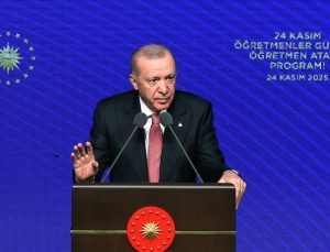 Salondaki ve ülkenin dört bir yanındaki tüm öğretmenlerin görevlerini bu yüksek şuurla, yüksek mesuliyet bilinciyle yerine getirdiklerine ve getireceklerine yürekten inandığını vurgulayan Erdoğan, “Şunu bilmenizi isterim. Öğretmenlerimiz, ilim, irfan, hikmet ve ahlak meşalesini ellerinde gururla taşıdıkça, Allah’ın izniyle Türkiye’nin yolu da ufku da sonuna kadar açıktır. Siz bu ruha sahip çıkarsanız, önümüz inşallah aydınlık olacaktır.” diye konuştu.