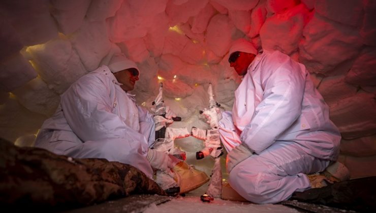Dağdaki 3 günlerini iglo ev ve mağaralarda geçiren polisler, kayak yapmayı ve çetin kış şartlarında doğada kalmayı öğrendi.